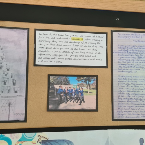 Lessons are planned and delivered in a variety of ways, such as writing, drawing, discussion and drama, to ensure that all pupils, regardless of need, access the full curriculum. Learning is adapted to ensure that all pupils can experience success in Religions & Worldviews lessons. Work from all year groups is celebrated throughout the year on a whole-school Religions & Worldviews display.